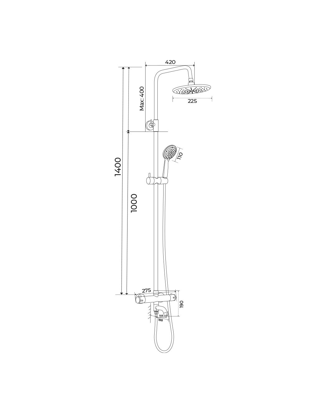 Стойка душевая с терм. смесителем для ванны и верхним душем DUSHA, DUS08-302