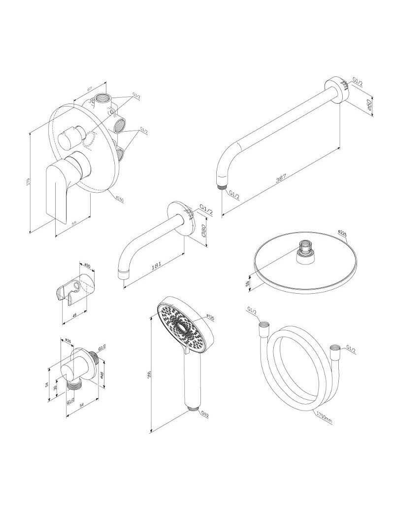 947510000 Apollo встраиваемая душевая система с ванно-душевым смесителем и изливом, хром