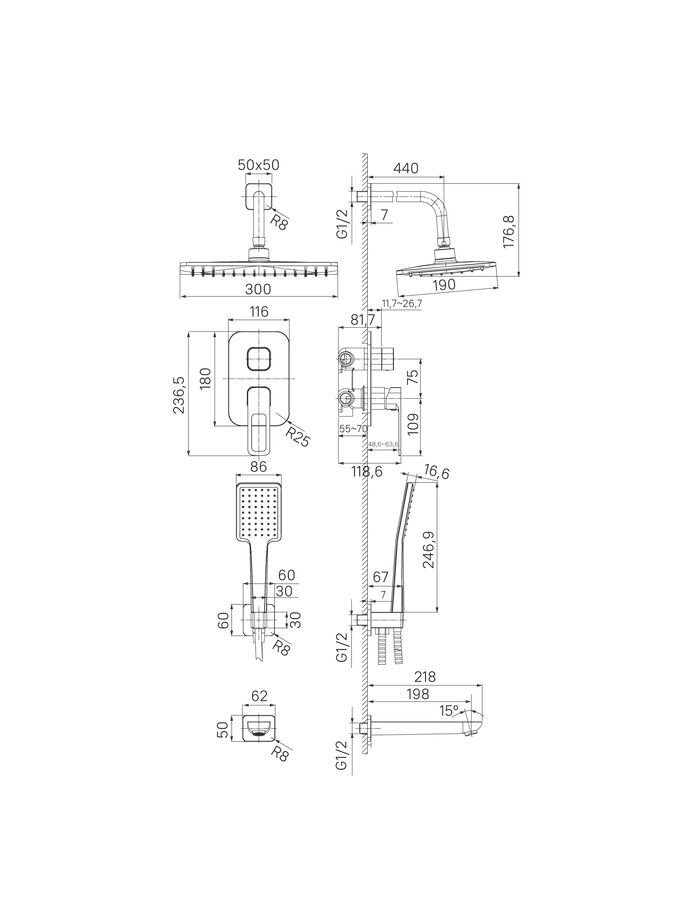 Душевая система с тропическим душем, ручным душем и изливом, черный матовый, Slide, IDDIS, SLIBL03i68
