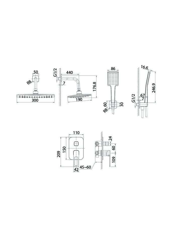 Душевая система скрытого монтажа с тропическим душем и ручным душем, черный матовый, Slide, IDDIS, SLIBL02i67