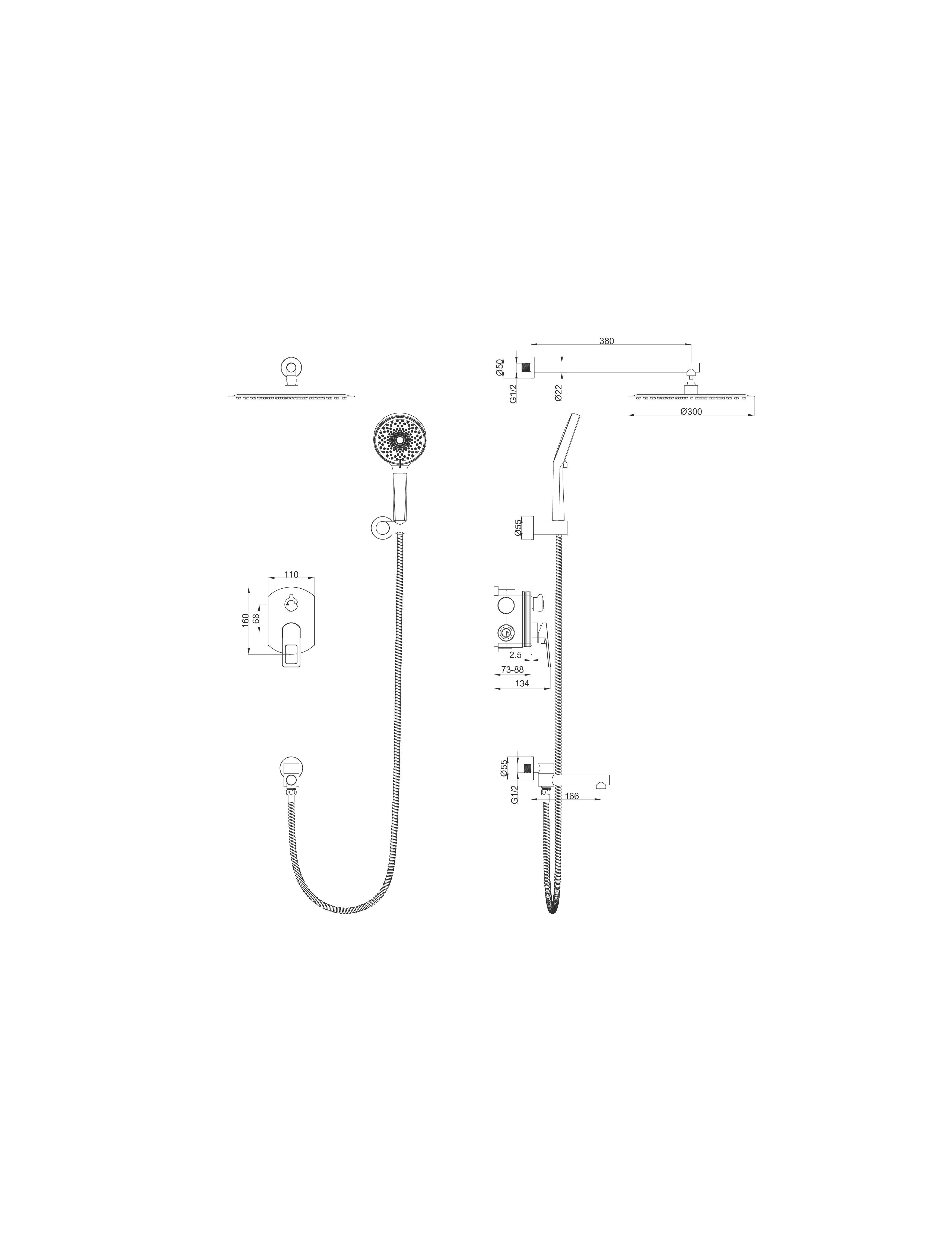 Душевая система встраиваемая WONZON & WOGHAND FRAME, Брашированное золото (WW-88939010-BG)