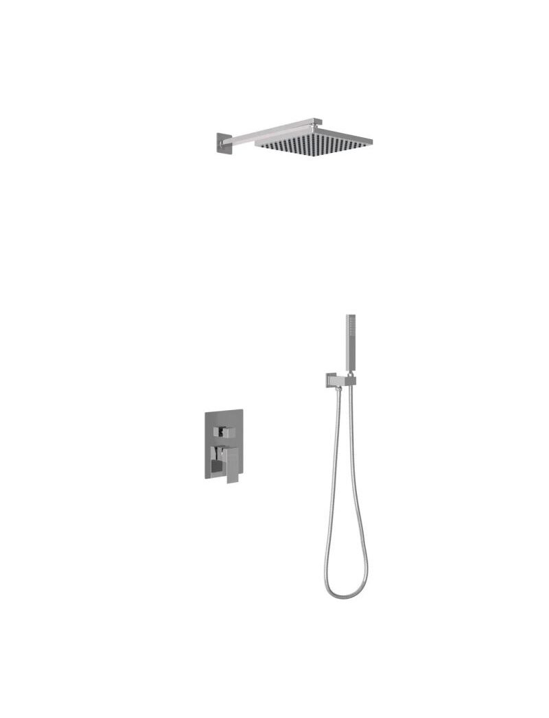 Душевой комплект BERGES NARDIS 2S - встраиваемый душевой комплект обладает двухрежимной системой и состоит из верхней лейки - «тропического ливня», ручного душа и смесителя. Лейка верхнего душа имеет инновационную систему самоочистки в виде гибких силиконовых вставок на форсунках душа, которые защищают изделие от известковых отложений. Верхний душ изготовлен из ABS пластика, имеет хромоникелевое покрытие, которое выглядит безупречно на протяжении всего периода эксплуатации. Ручной душ изготовлен из латуни. Шланг выполнен из нержавеющей стали (внутри epdm), смеситель с латунным корпусом имеет керамический картридж с пропускной способностью 28 л/мин, все держатели и кронштейны сделаны из латуни и нержавеющей стали.Скрытый монтаж комплекта позволяет создавать красивое и эргономичное внутреннее пространство всего помещения.