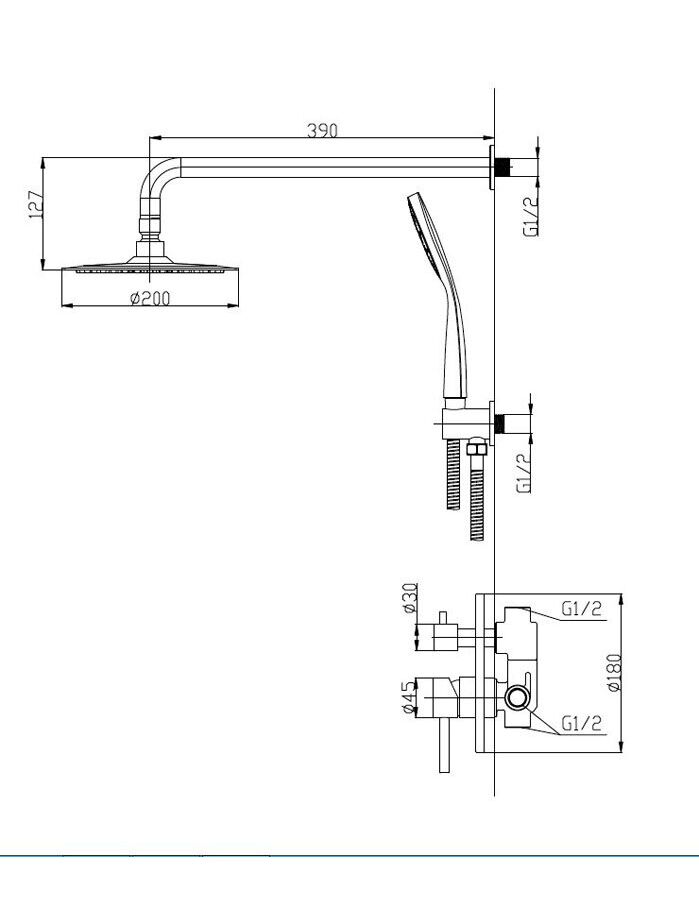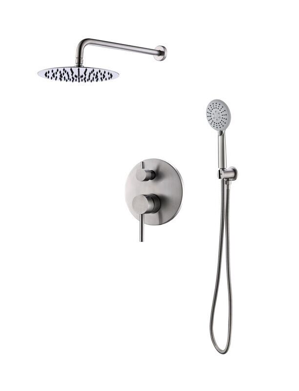 Душевой комплект со встраиваемым смесителем с переключателем, верхним душем 250 мм, ручным душем, исполнение сатин