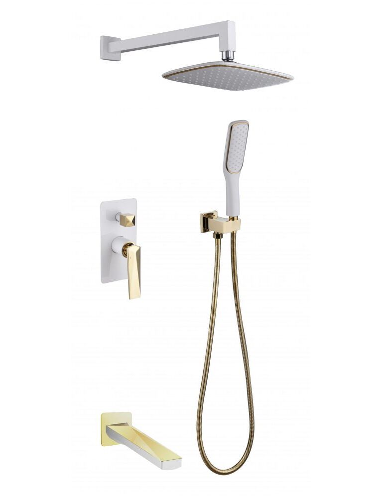 Смеситель встроенный с изливом БЕЛЫЙ+ЗОЛОТО