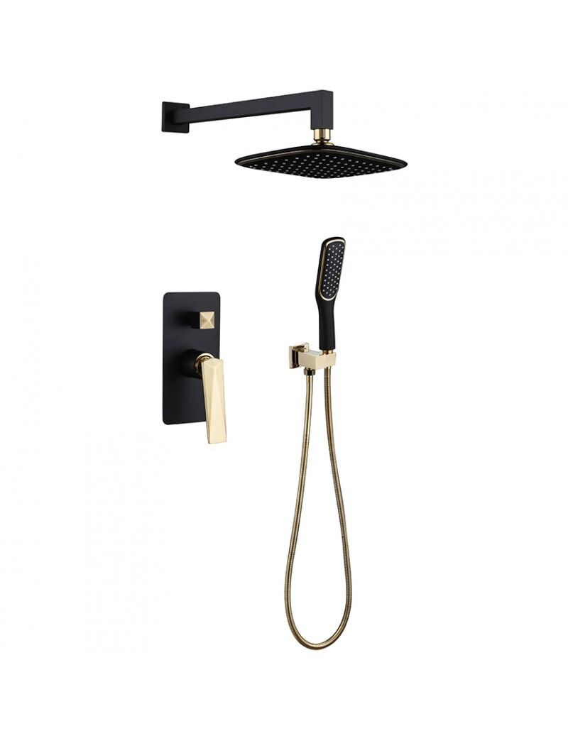 Смеситель встроенный + верхний душ + ручной душ ЧЕРНЫЙ+ЗОЛОТО