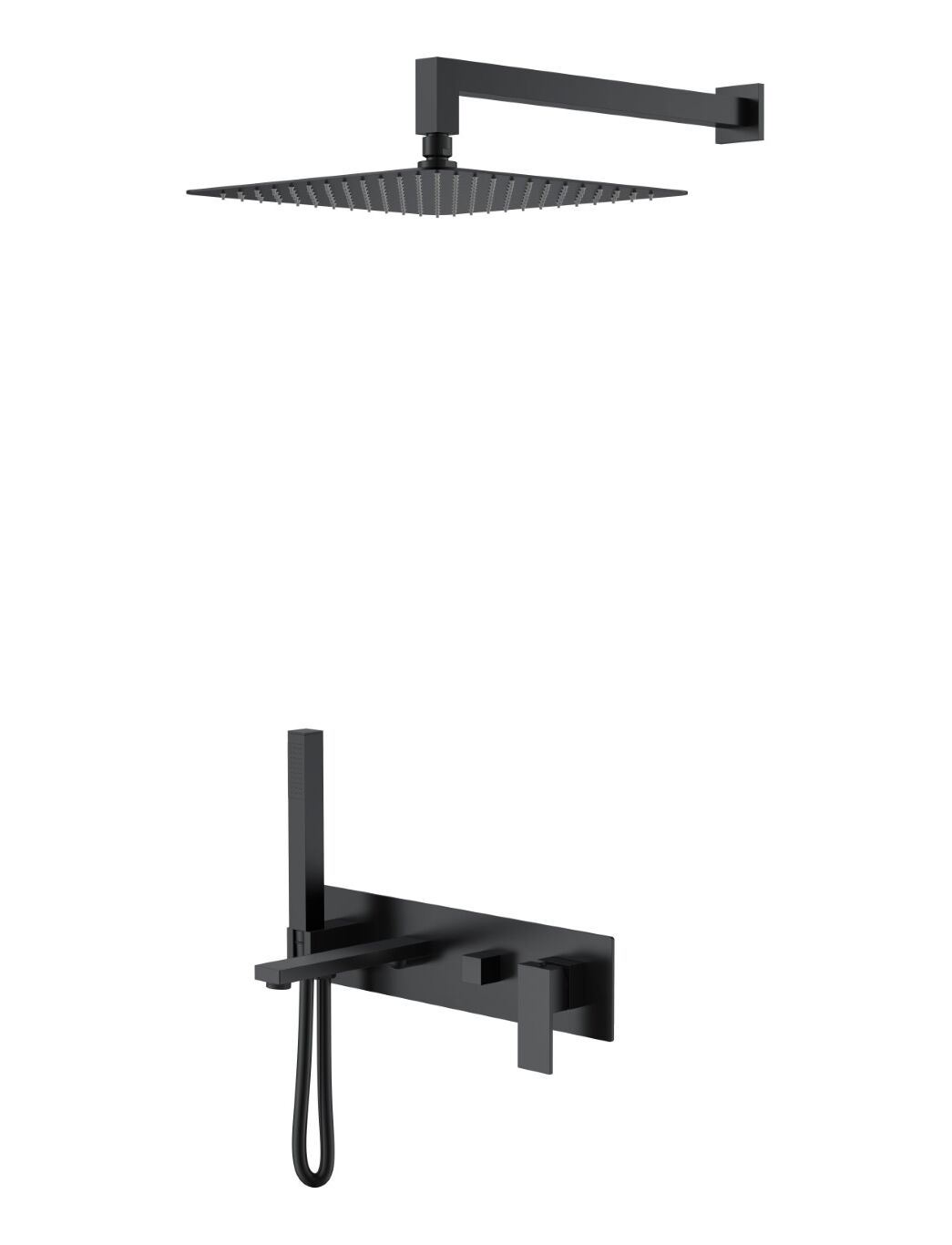 Смеситель встроенный + верхний+ ручной душ Qubic Matt Black