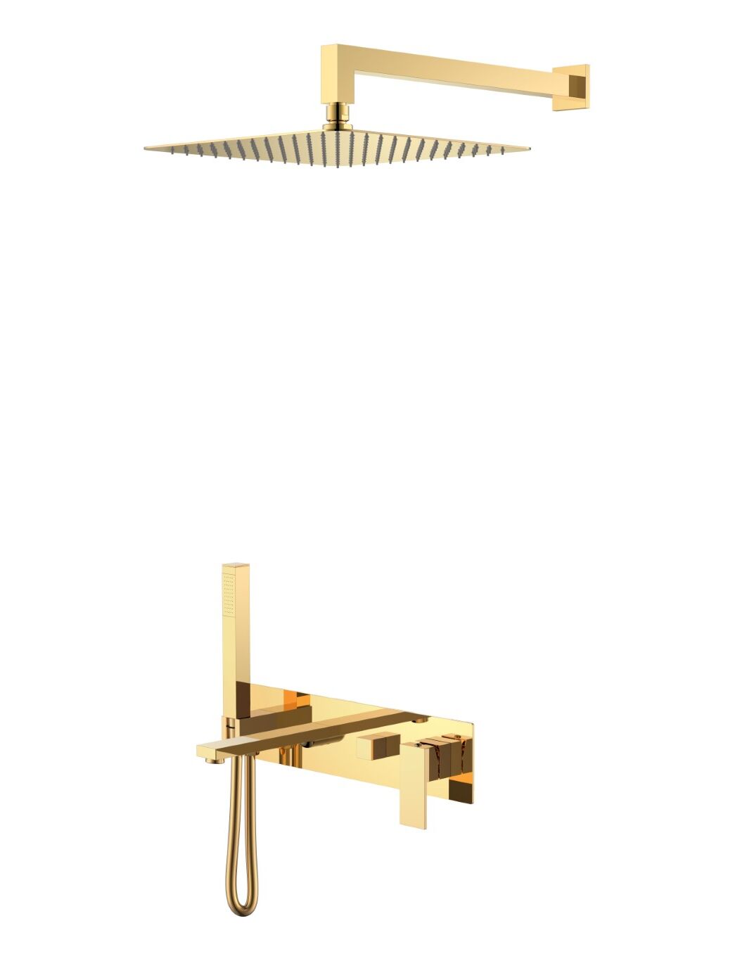 Смеситель встроенный + верхний+ ручной душ Qubic Shinny Gold