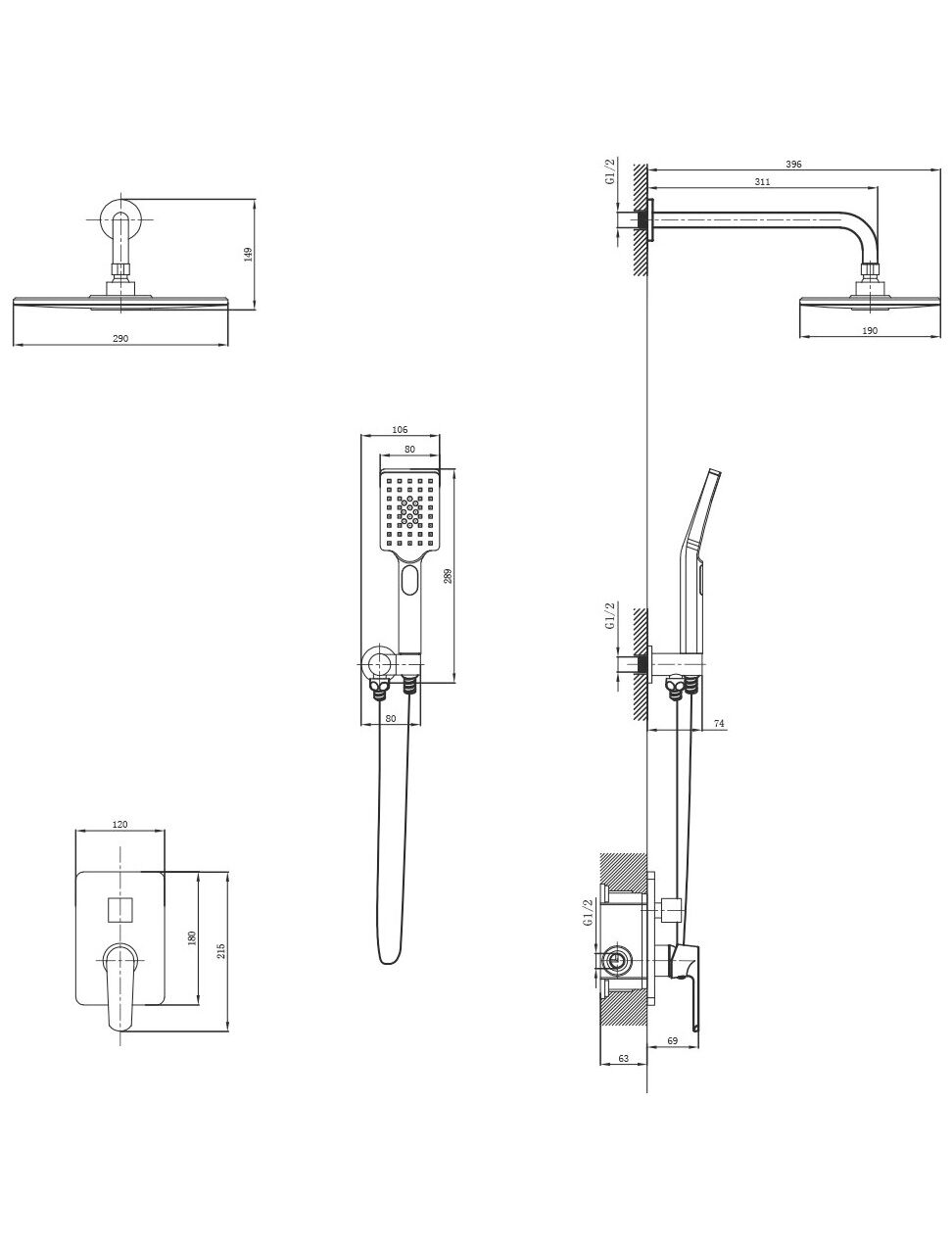 Размер верхнего душа: