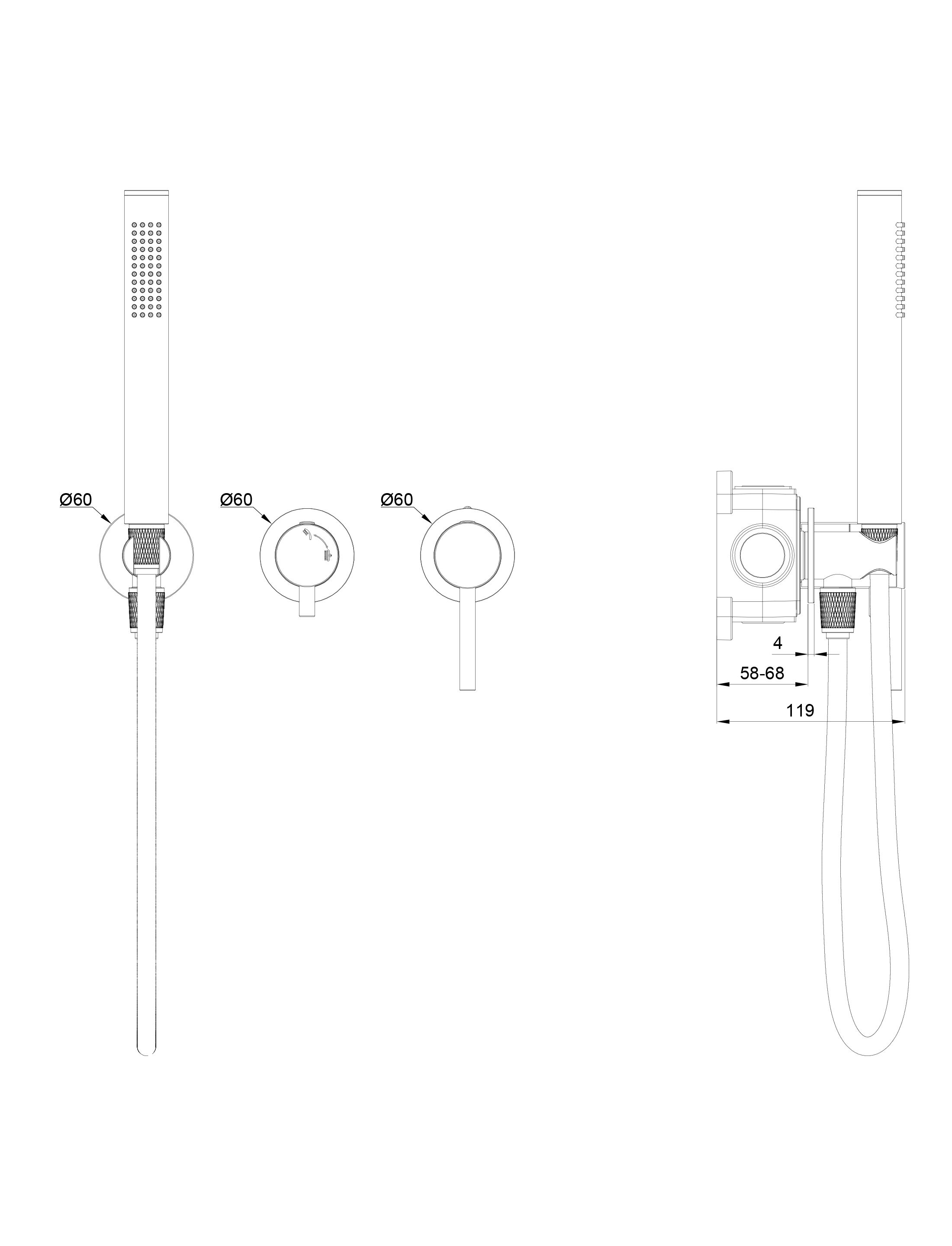 Смеситель для душевой системы встраиваемый WONZON & WOGHAND STICK, Темный графит (WW-838017-BGM)