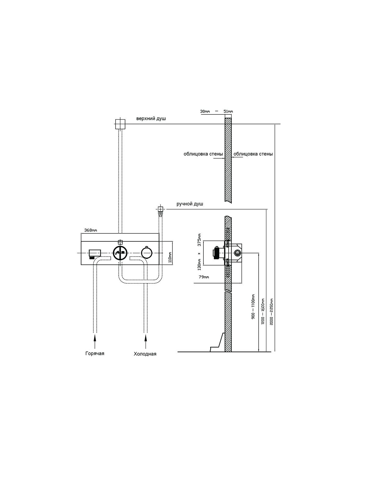 Встраиваемый смеситель для душа VSCV-422TMB двухфункциональный, термостатический, черный, , шт