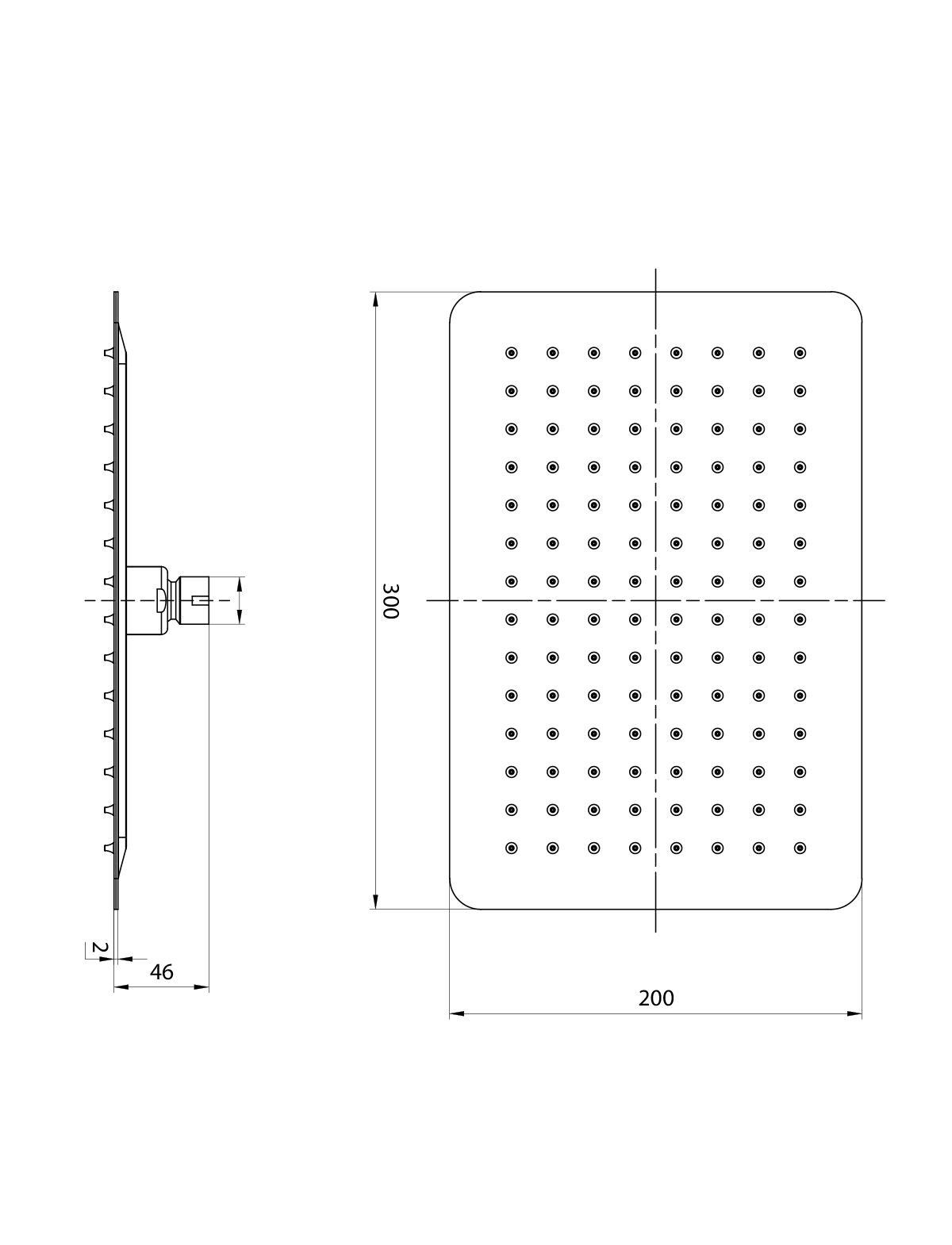 Лейка душевая верхняя, прямоугольная, 30х20см, нерж. сталь/графит