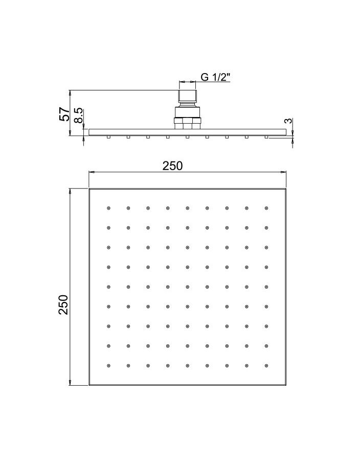 Верхний душ Paini 250 мм, квадратный