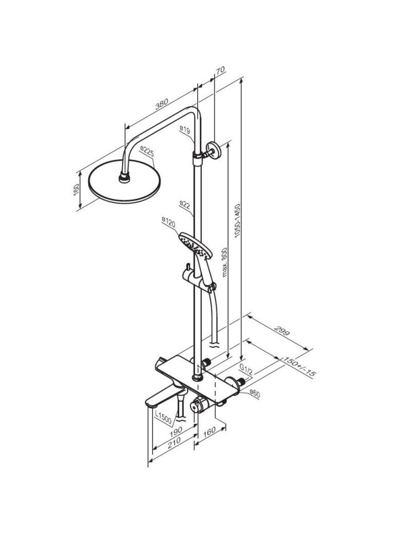 977760300 Jupiter душевая система с ванно-душевым ТМС смесителем-полкой, черный