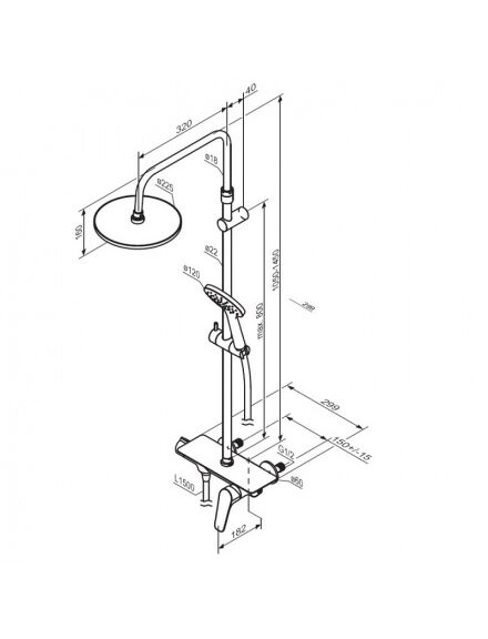 977780300 Jupiter душевая система с душевым смесителем-полкой, чёрный