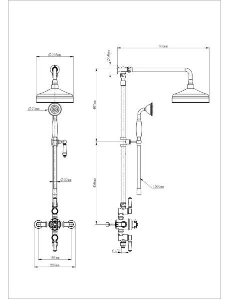 Душевая система с термостатом WONZON & WOGHAND RETRO, Темный графит (WW-B3041-BGG)