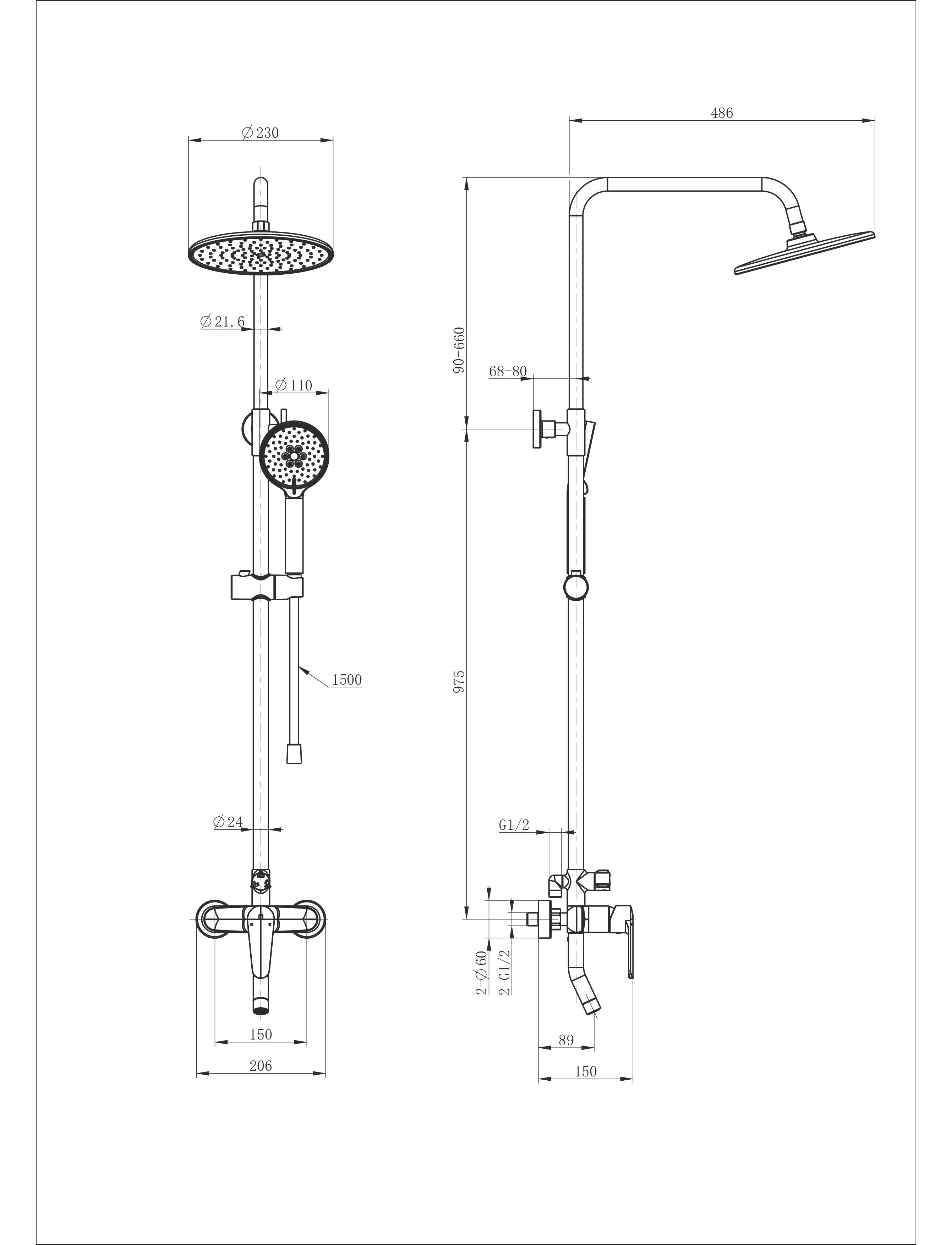 Размер верхнего душа: