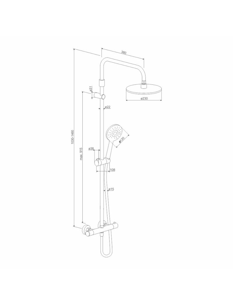 DX218091000 Option, душевая система с ТМС для душа: верхний душ 230мм, ручной душ 120мм, 1 режим, шт