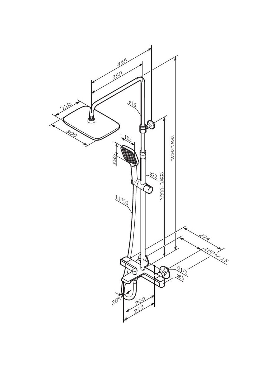 F078F500 Func, душ. система: см-ль д/ванны/душа с ТМС, душ.штанга, верхн. душ квадр., ручн.душ, хром