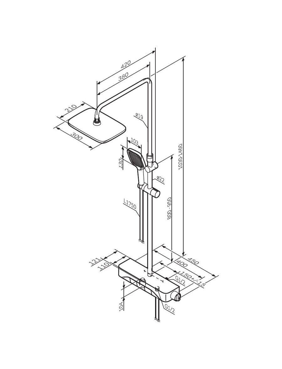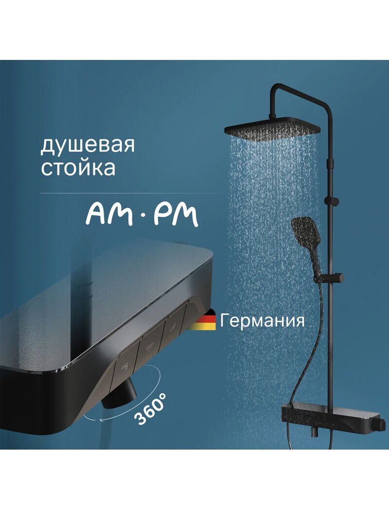 F078F722 Func, душ.система: см-ль-полка д/ванны/душа, душ.штанга, верхн. душ квадр., ручн.душ, черн.