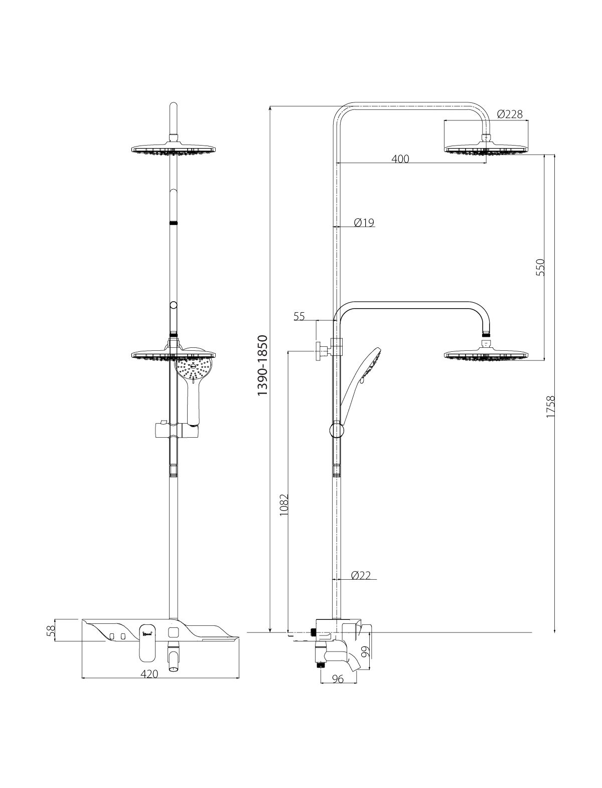 Верхний душ: