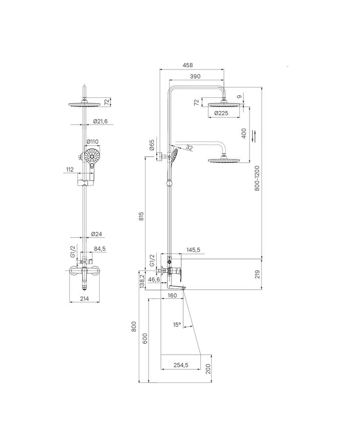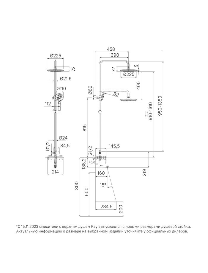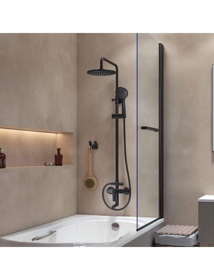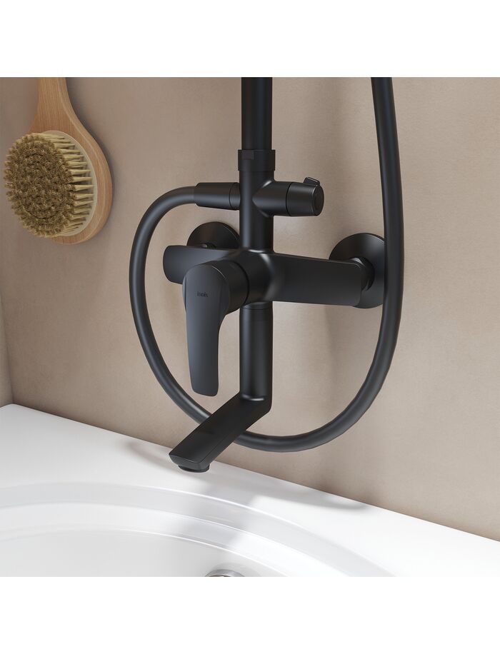 Смеситель с верхним душем и изливом, черный матовый, Ray, IDDIS, RAYBL3Fi06