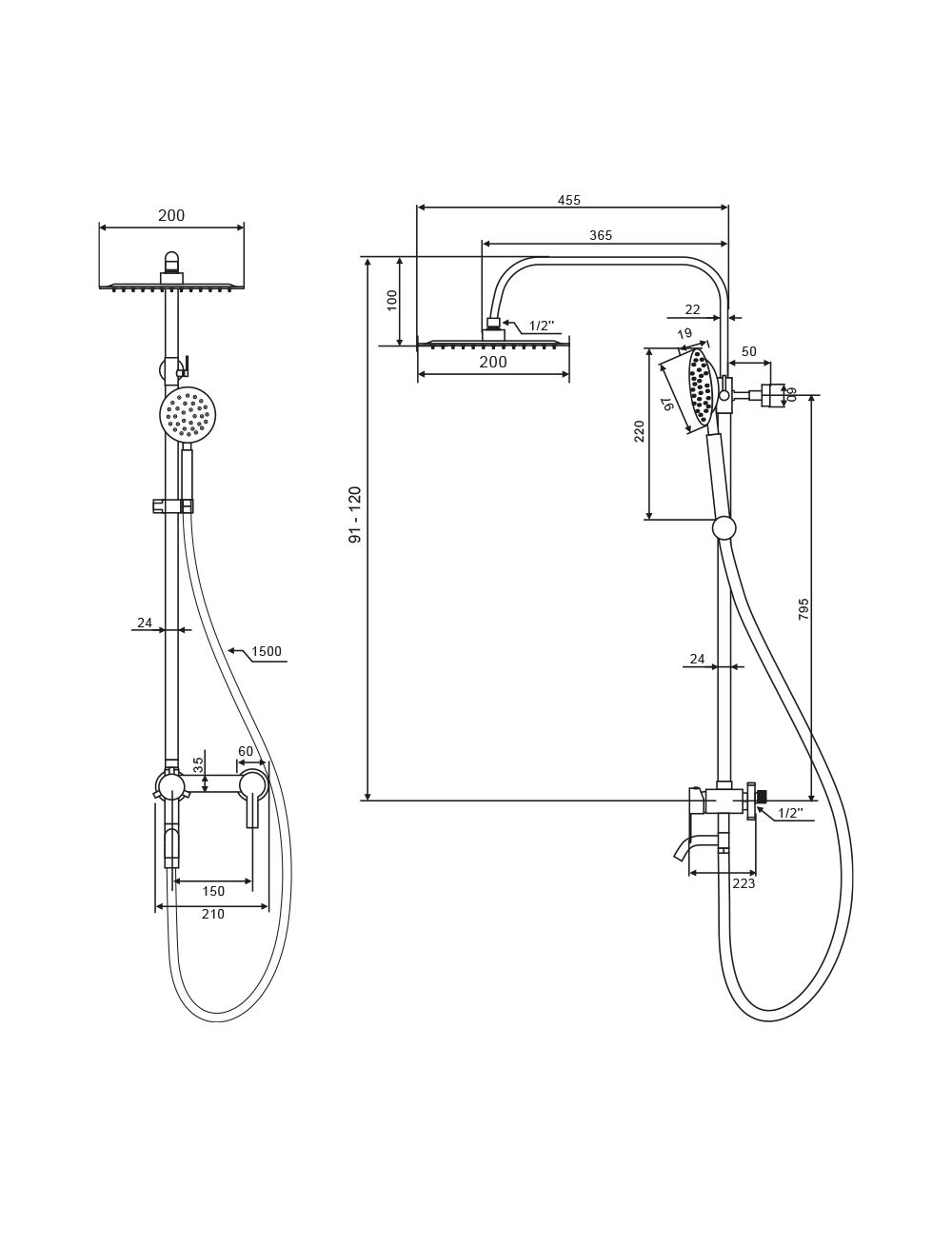 Стойка душевая со смесителем для ванны EKO, EKO05-314