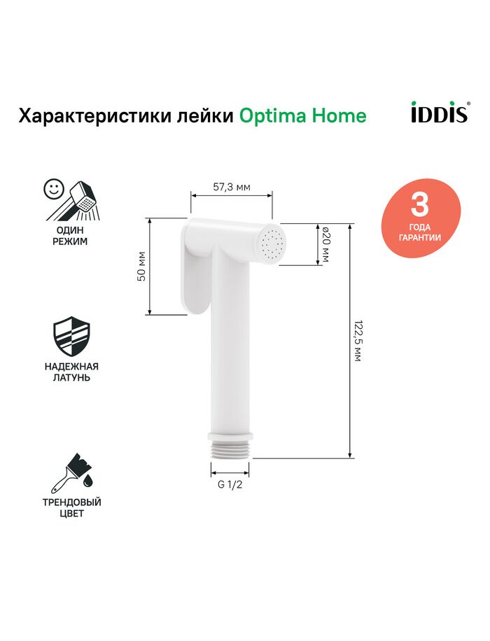 Гигиеническая лейка, белая матовая, латунь, IDDIS, 020WB0Gi20
