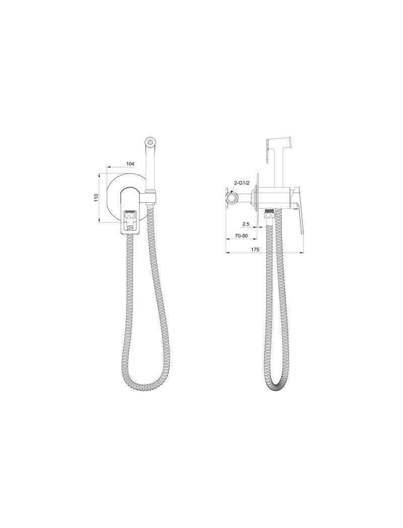 Смеситель с гигиеническим душем встраиваемый WONZON & WOGHAND FRAME, Черный матовый (WW- 88829010-MB)