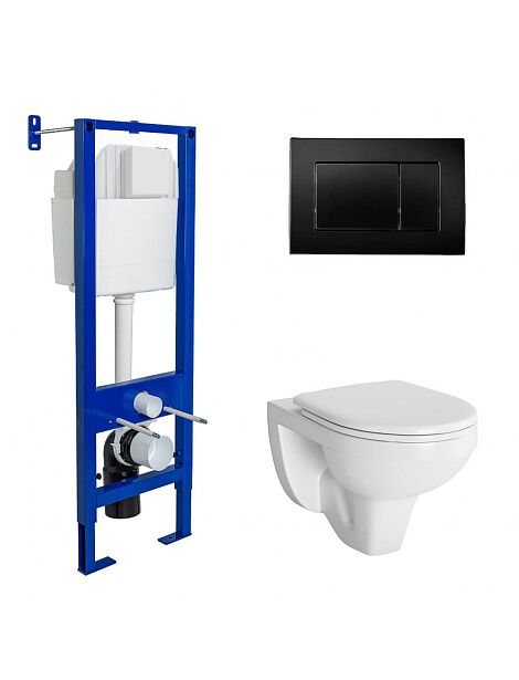 Комплект BERGES для монтажа подвесного унитаза GAMMA: инсталляция АТОМ410, кнопка черная SoftTouch, унитаз с сиденьем микролифт, быстросъем