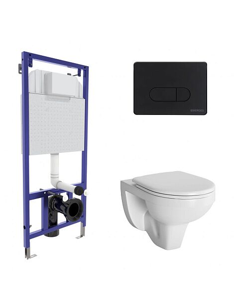 Комплект BERGES для монтажа подвесного унитаза GAMMA: инсталляция NOVUM525, кнопка D5, унитаз с сиденьем микролифт, быстросъем