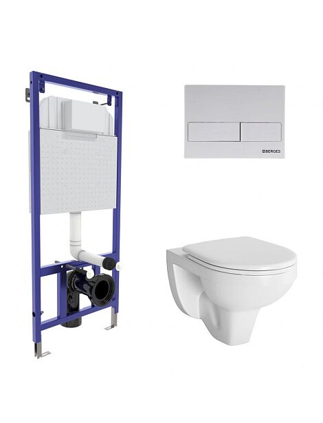 Комплект BERGES для монтажа подвесного унитаза GAMMA: инсталляция NOVUM525, кнопка L4, унитаз с сиденьем микролифт, быстросъем