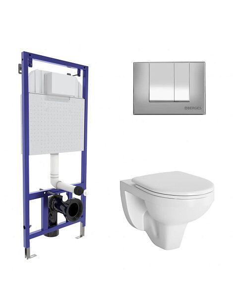 Комплект BERGES для монтажа подвесного унитаза GAMMA: инсталляция NOVUM525, кнопка S3, унитаз с сиденьем микролифт, быстросъем