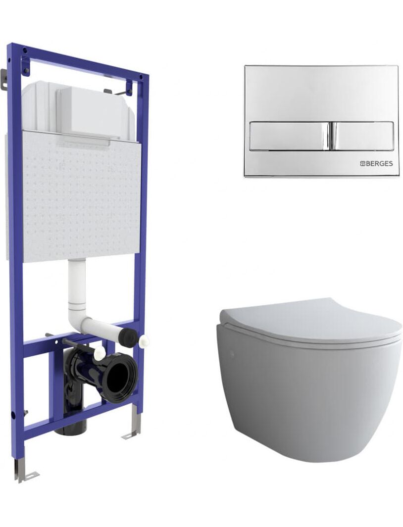 Комплект BERGES для монтажа подвесного унитаза: инсталляция NOVUM525, кнопка L5 черная SoftTouch, унитаз EGO XL Rimless, сиденье дюропласт Toma Slim SO, микролифт, быстросьем СПЕЦИАЛЬНОЕ ПРЕДЛОЖЕНИЕ!!!
