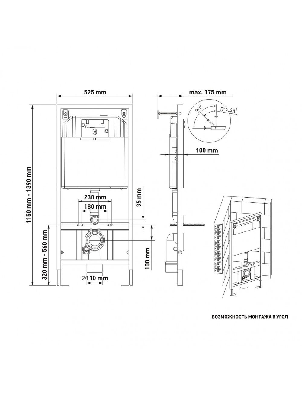 * Полный комплект для быстрой установки * Габаритные размеры инсталляции 525-1150-1390мм