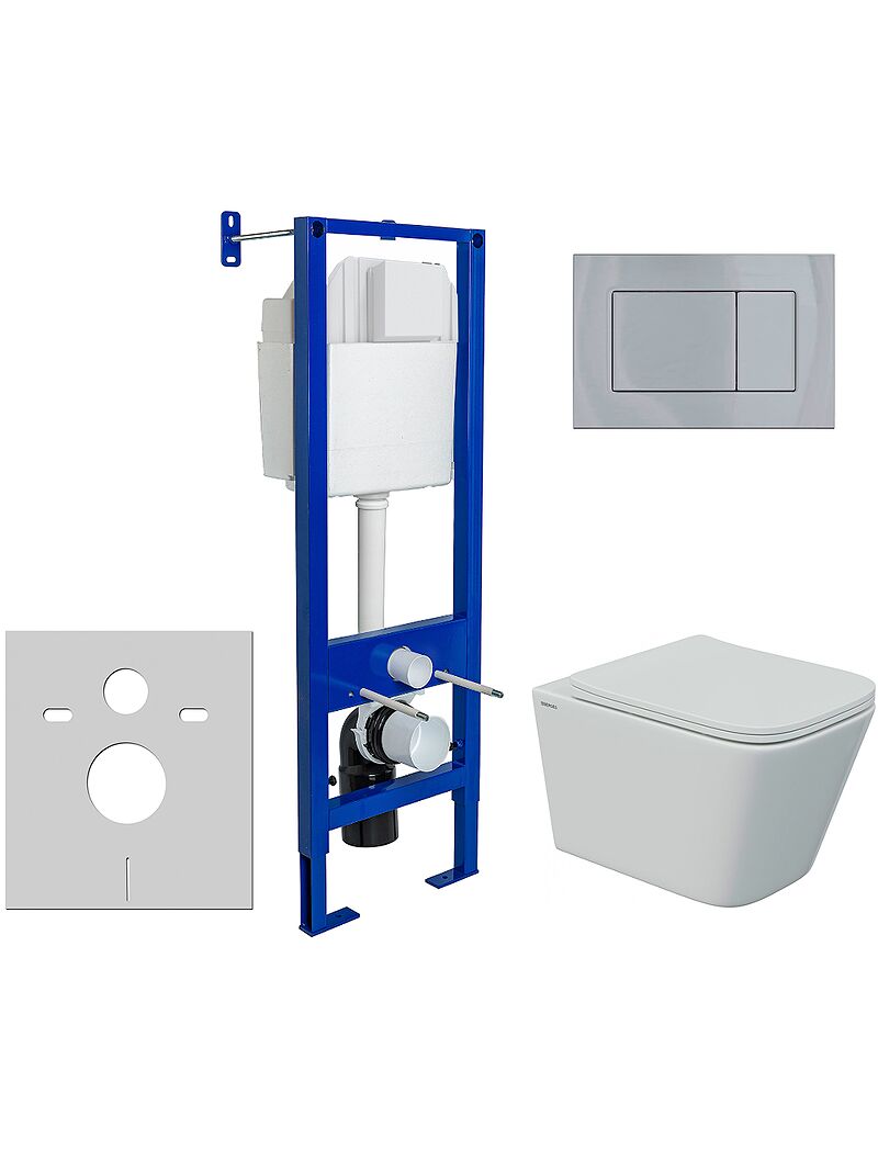 Комплект BERGES: инсталляция АТОМ хром, унитаз FLOE S Rimless 51 см, сидение дюропласт Floe S Slim SO, микролифт, быстросъём