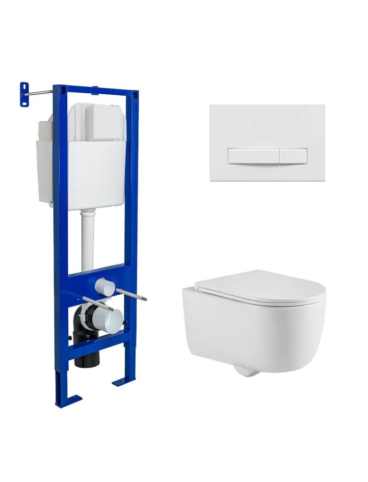 Полный Комплект ATOM Line для монтажа подвесного унитаза: инсталляция, кнопка белая: cтальная рама с антикоррозийным покрытием, Расчётная нагрузка до 400 кг.