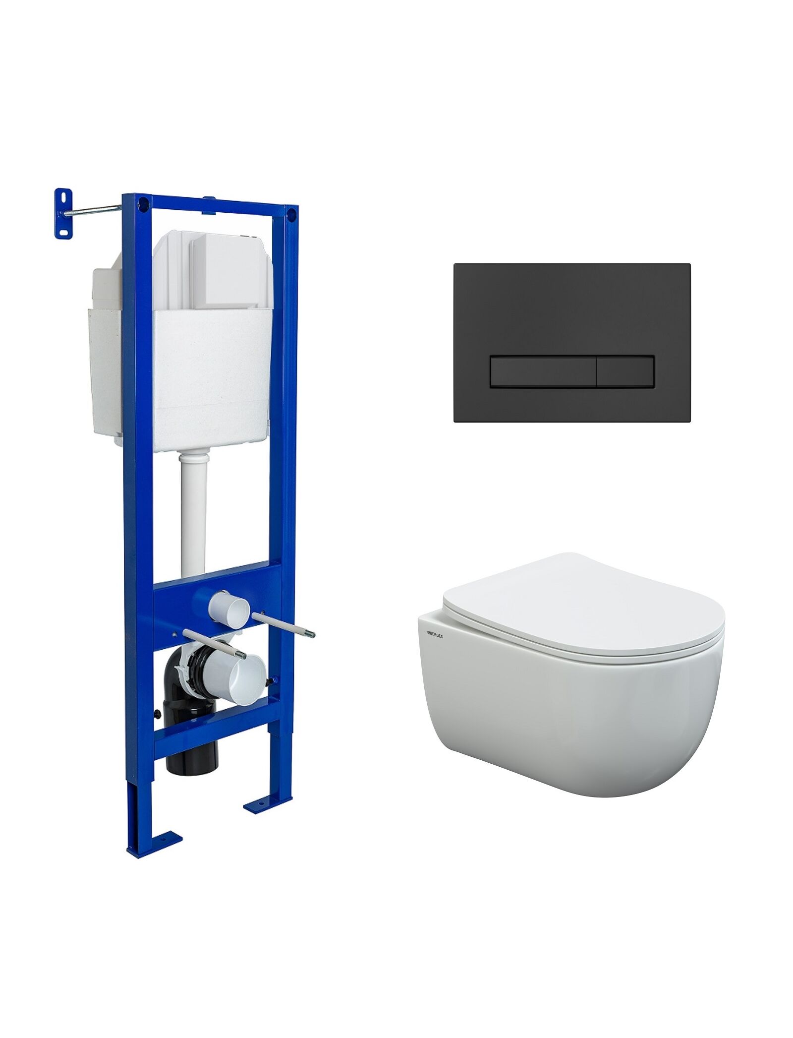 Полный Комплект ATOM Line для монтажа подвесного унитаза: инсталляция, кнопка черная Soft Touch: стальная рама с антикоррозийным покрытием, Расчётная нагрузка до 400 кг.