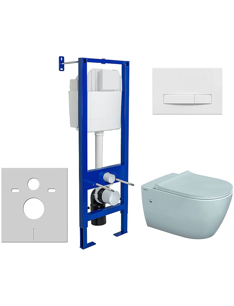 Комплект BERGES: инсталляция АТОМ Line кнопка белая, унитаз MASCON Rimless, сидение дюропласт микролифт, быстросъём