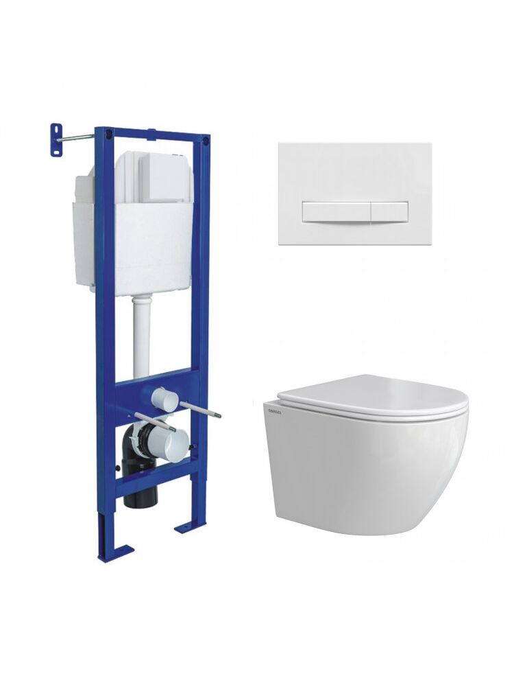 Комплект BERGES: инсталляция АТОМ Line кнопка белая, унитаз OKUS Rimless 49 см, сиденье дюропласт микролифт, быстросъём