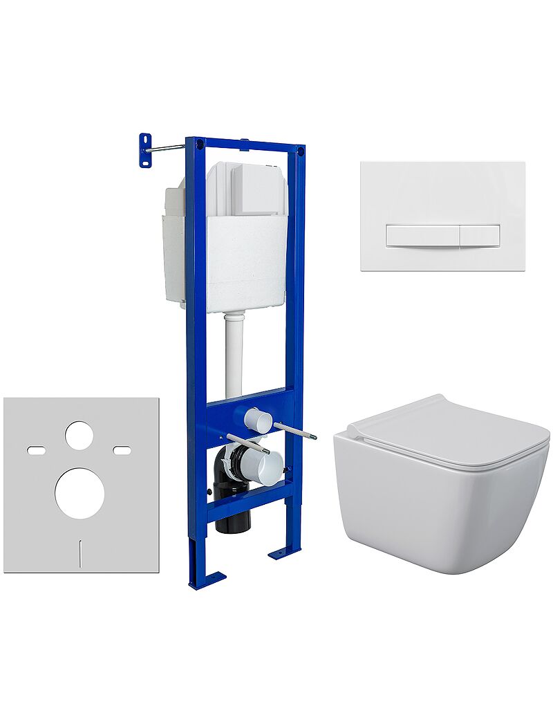 Комплект BERGES: инсталляция АТОМ Line кнопка белая, унитаз QUATTRO S Rimless 49 см, сидение дюропласт микролифт, быстросъём