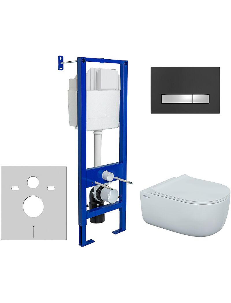 Комплект BERGES: инсталляция АТОМ Line кнопка черная/хром, унитаз EGO XL Rimless см, сиденье микролифт быстросъем