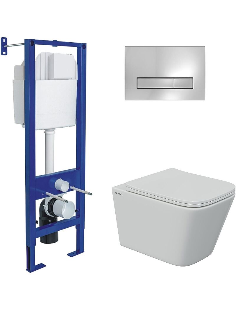 Комплект BERGES: инсталляция АТОМ Line кнопка глянцевый хром, унитаз FLOE S Rimless 51 см, сидение дюропласт Floe S Slim SO, микролифт, быстросъём