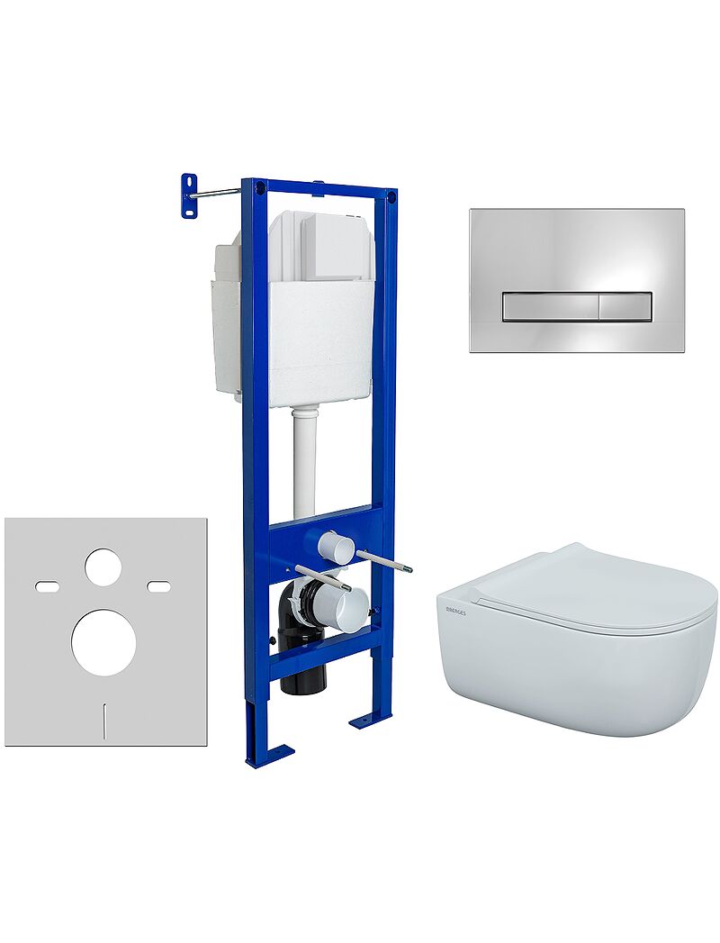Комплект BERGES: инсталляция АТОМ Line кнопка хром глянец, унитаз EGO XL Rimless, сидение дюропласт микролифт, быстросъём