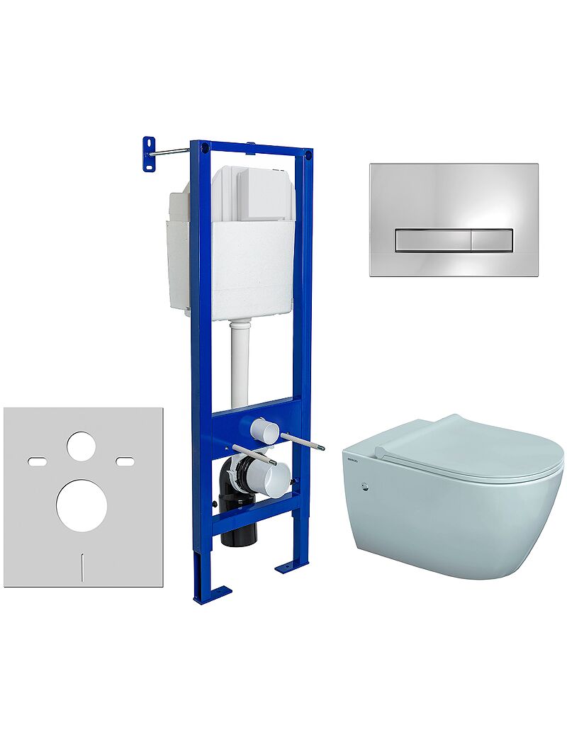 Комплект BERGES: инсталляция АТОМ Line кнопка хром глянец, унитаз MASCON Rimless, сидение дюропласт микролифт, быстросъём