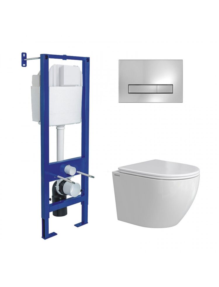 Комплект BERGES: инсталляция АТОМ Line кнопка хром глянец, унитаз OKUS Rimless 49 см, сиденье дюропласт микролифт, быстросъём