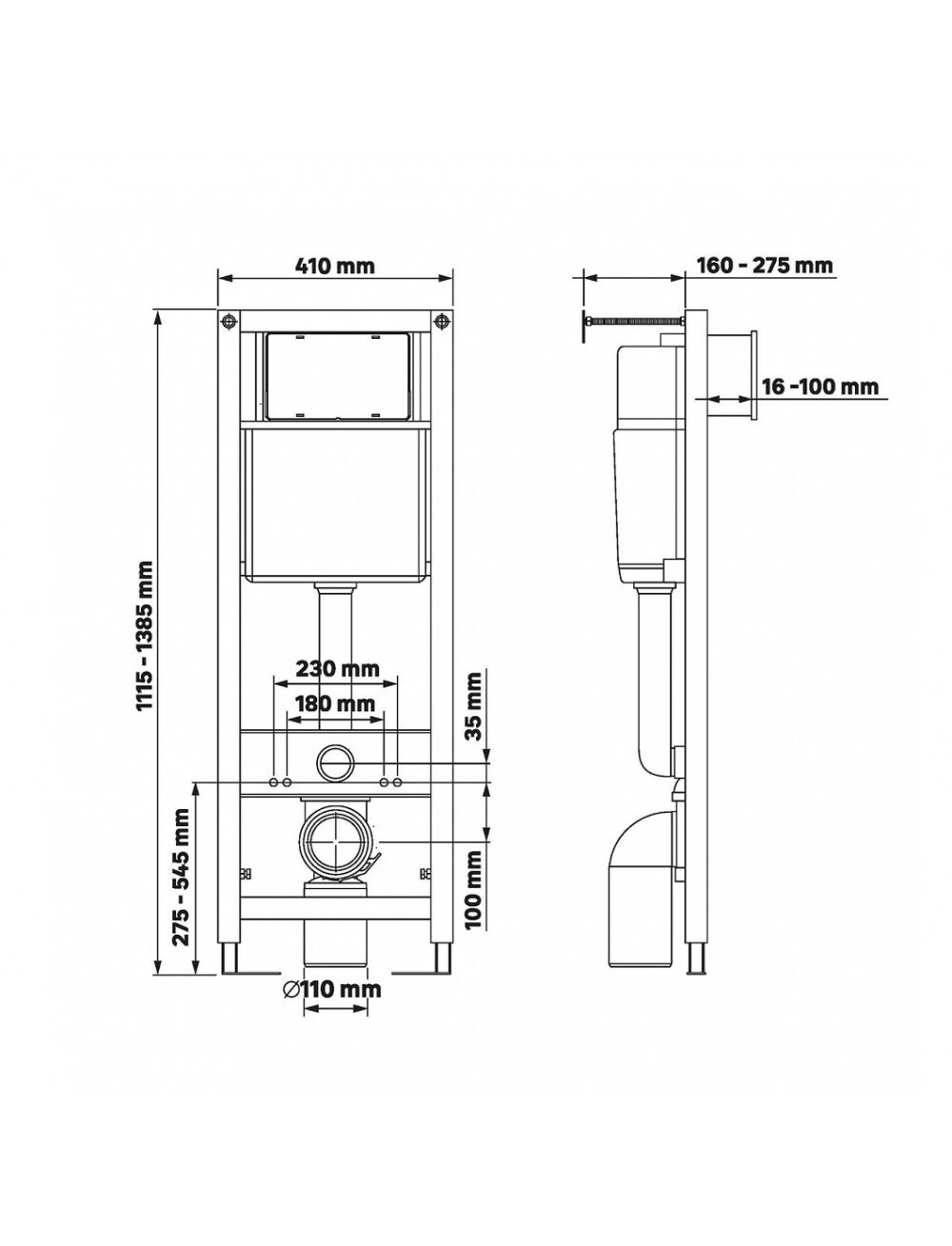 Полный Комплект ATOM Line для монтажа подвесного унитаза: инсталляция, кнопка хром глянец: cтальная рама с антикоррозийным покрытием, Расчётная нагрузка до 400 кг.