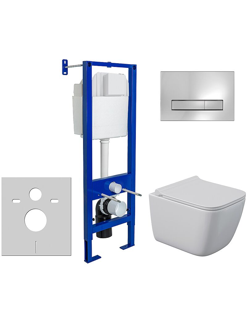 Комплект BERGES: инсталляция АТОМ Line кнопка хром глянец, унитаз QUATTRO S Rimless 49 см, сидение дюропласт микролифт, быстросъём