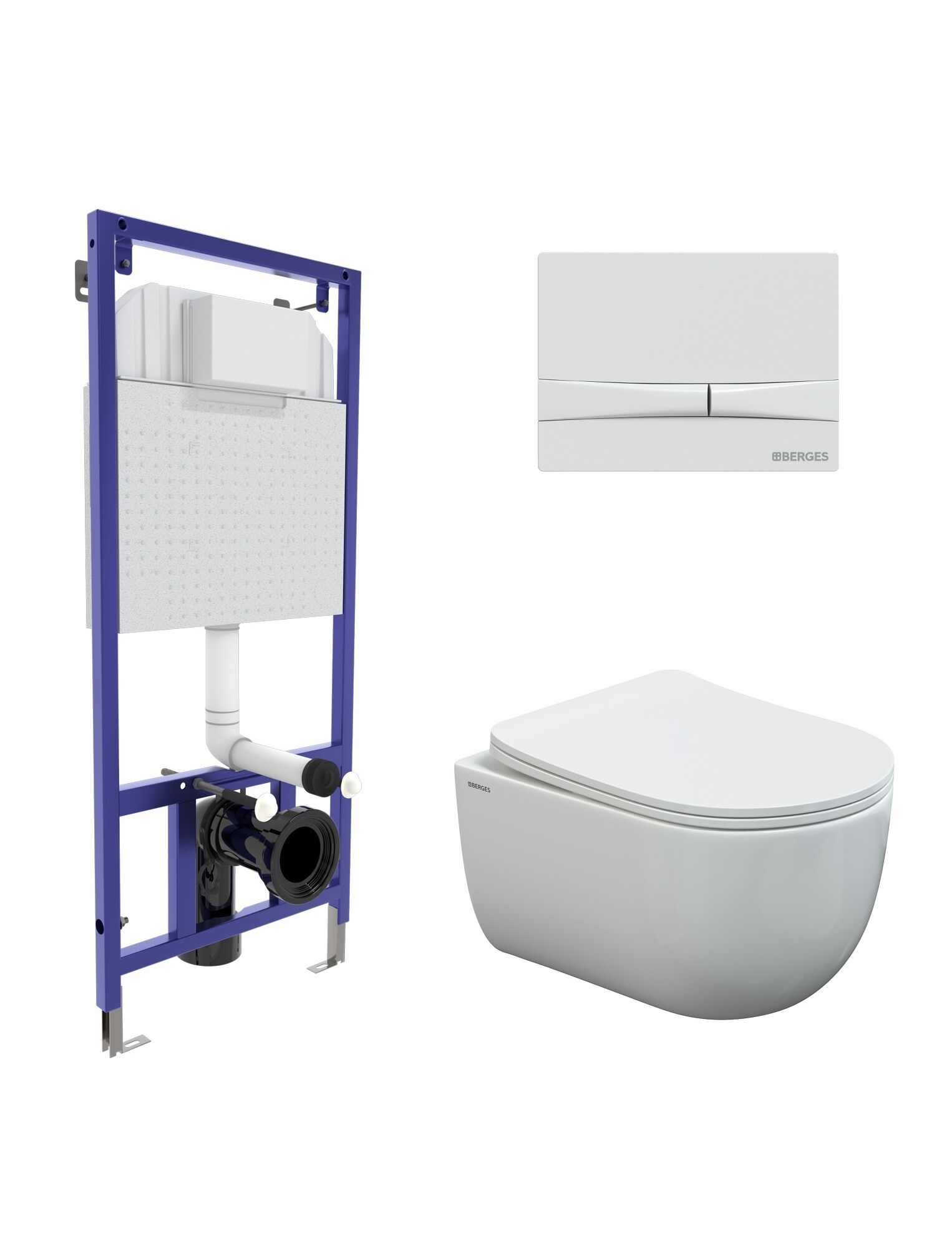 Комплект BERGES: инсталляция NOVUM кнопка белая F1, унитаз VENTAS, сиденье дюропласт Ventas Slim SO