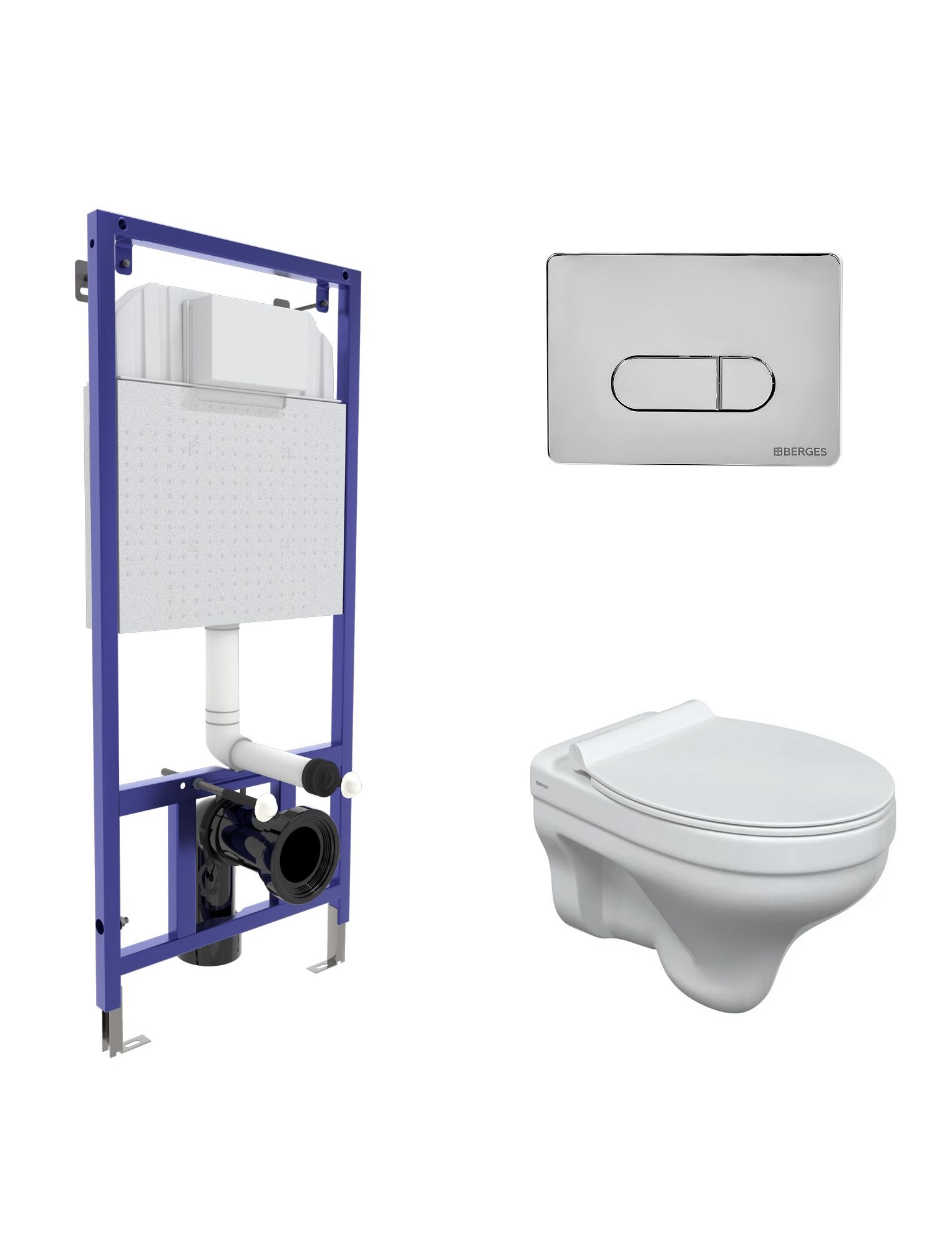 Комплект BERGES: инсталляция NOVUM, кнопка D3 глянцевый хром, унитаз ALBIT S, сиденье дюропласт Top Slim SO