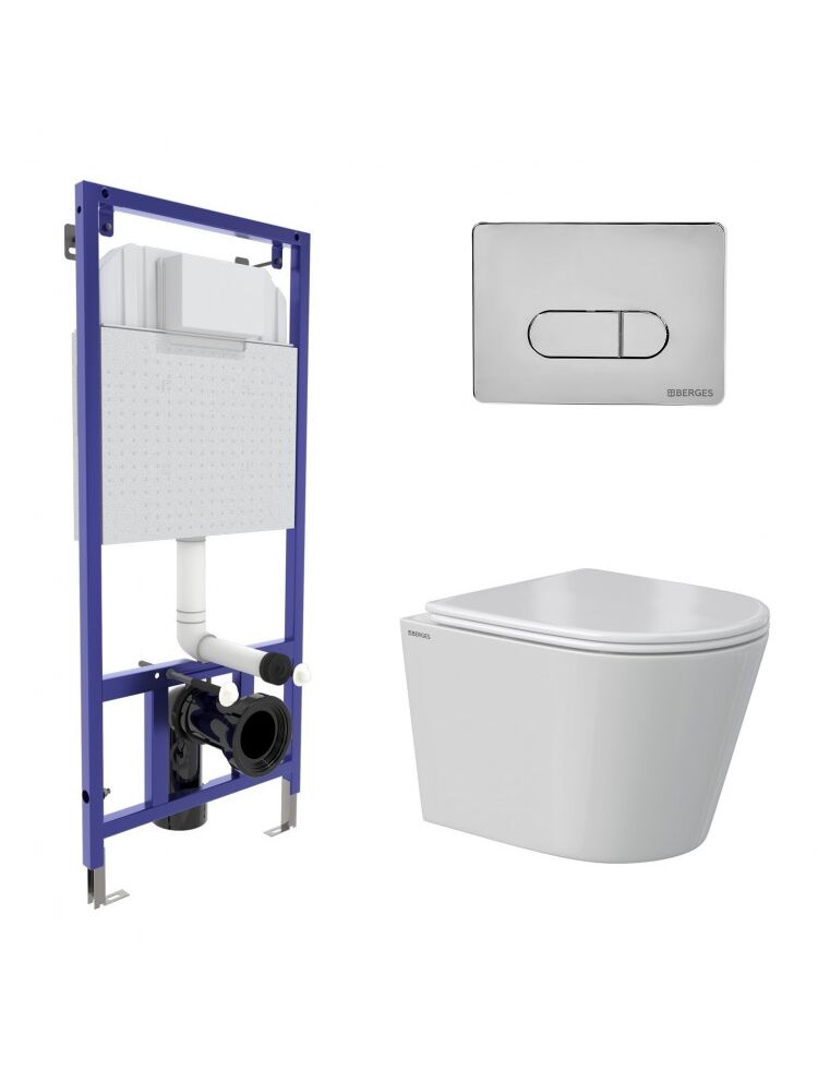 Комплект BERGES: инсталляция NOVUM кнопка D3 хром глянец, унитаз VITA Rimless 49 см, сиденье дюропласт микролифт, быстросъём